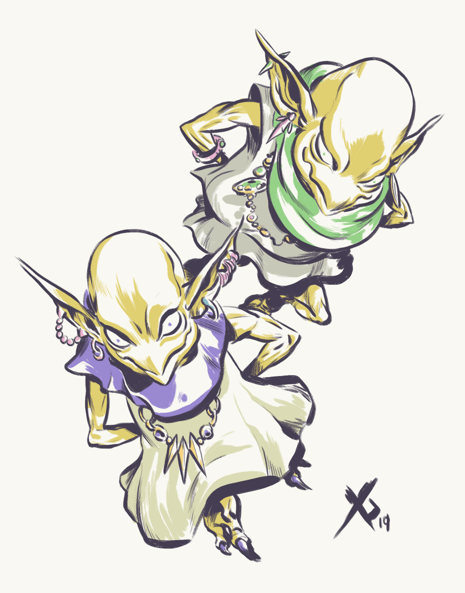 masa_mune Masa and Mune. The game tries to give them a bit of a distinct flavor and I tried leaning on that a little bit further but otherwise I put a bit more Zeal fashion on them and kept their original, semi Reptid look fairly close