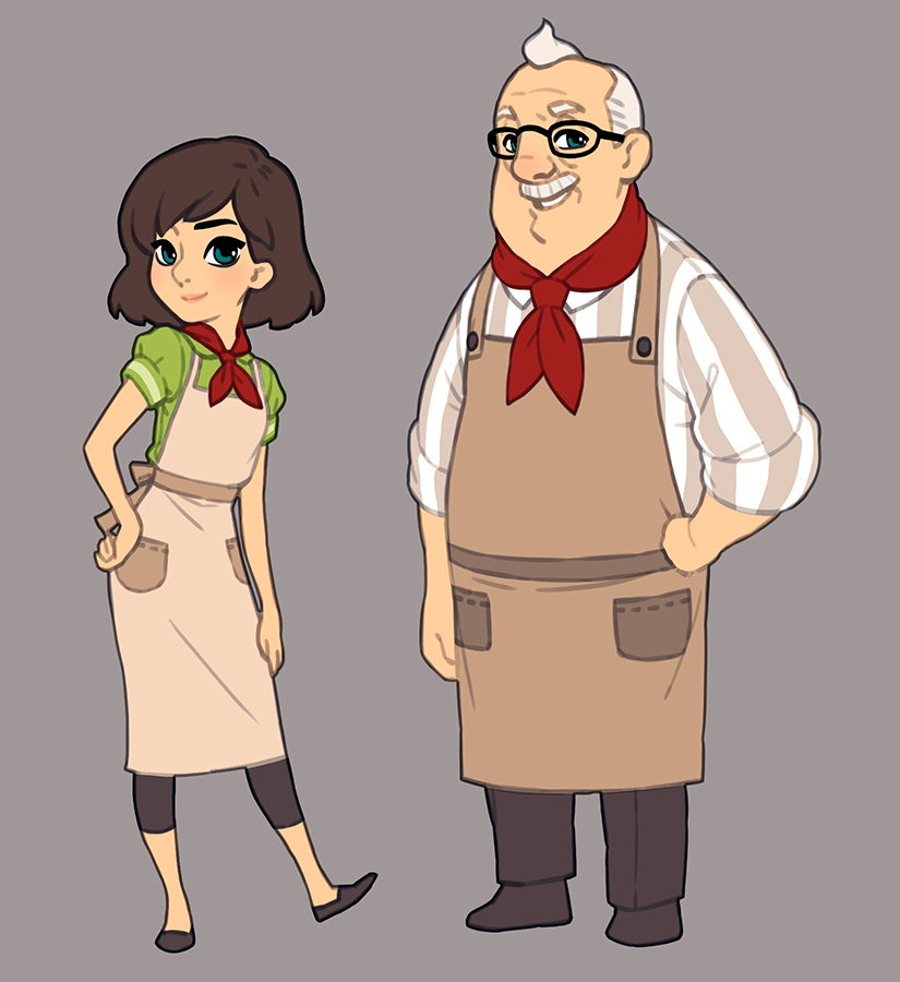 And of course, the customers! design called for a strong cast of VIP customers that would have a personalized story for each, so each time you would see them walking around town youd make sure to give them your full attention
